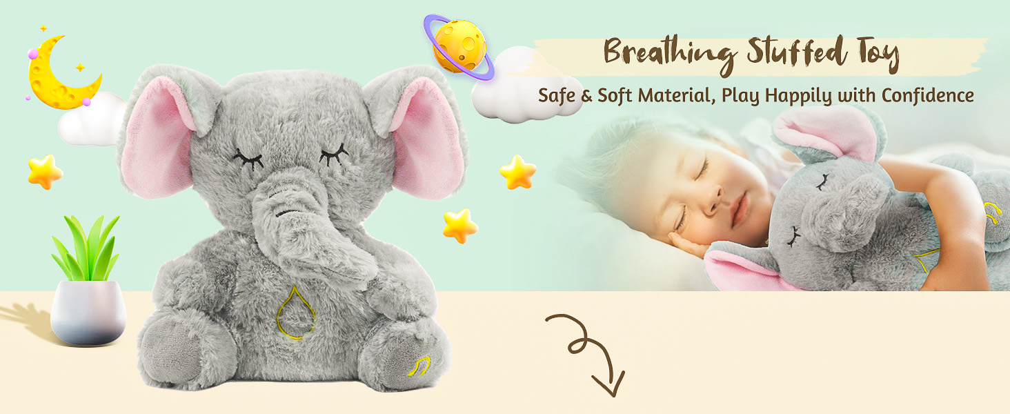 TITLE: Breathing Elephant, Breathing Stuffed Animal, Rhythmic Breathing Motion with Music Lights & Breathing Motion for Newborns 0+ Months, Perfect for Relieving Baby Quiet